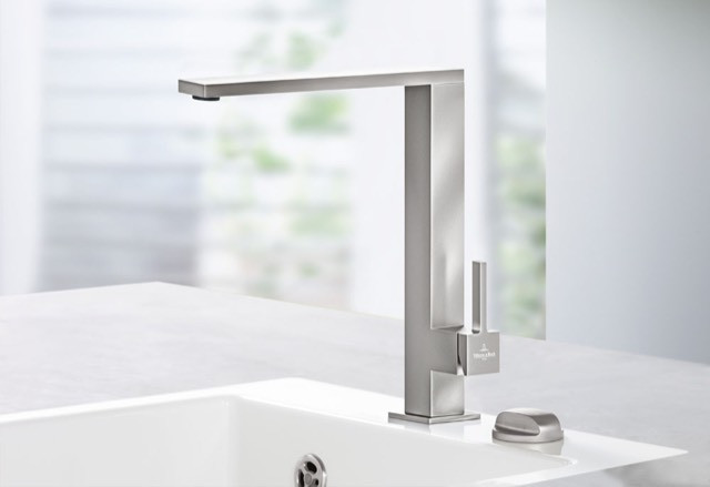V&B Spültisch-Einhebelmischer Finera Square 10,5 l/min, schwenkbarer Strahlregler, Edelstahl massiv