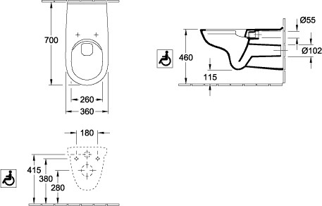 V&B Wand-WC-Combi-Pack Vicare Universal Tiefspüler, wandhängend, Abgang waagerecht