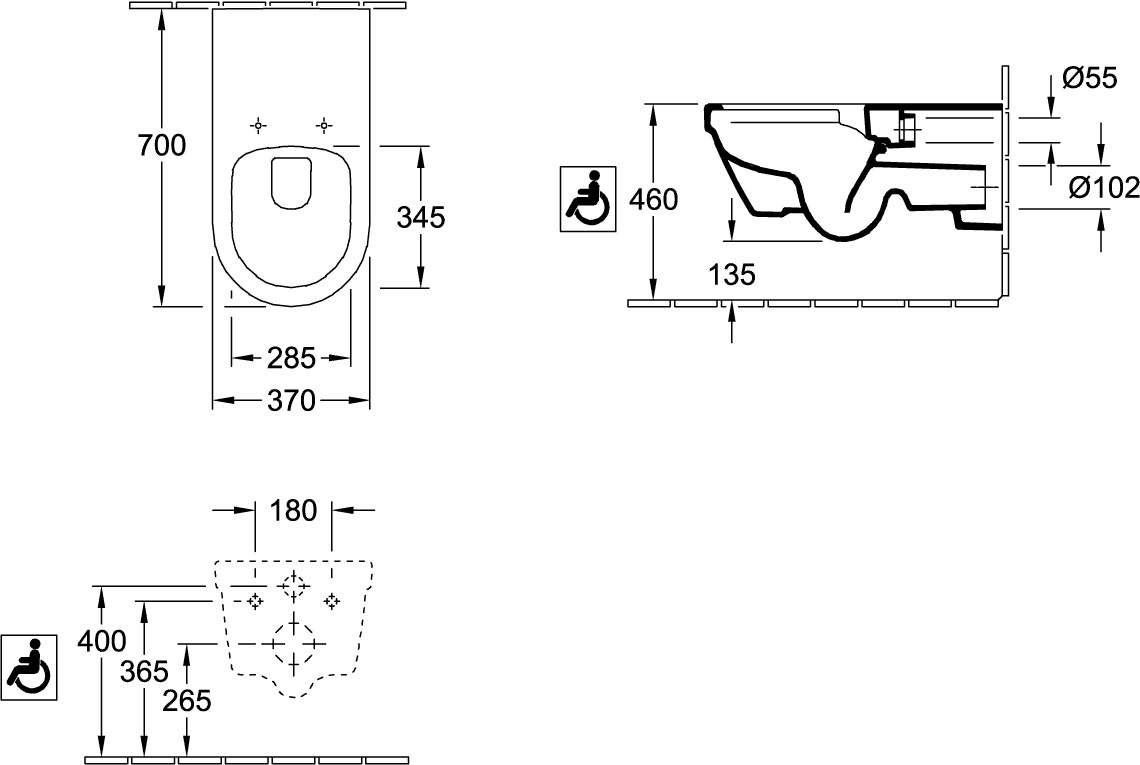 V&B Wand-WC-Combi-Pack Vicare Universal Tiefspüler, wandhängend, Abgang waagerecht