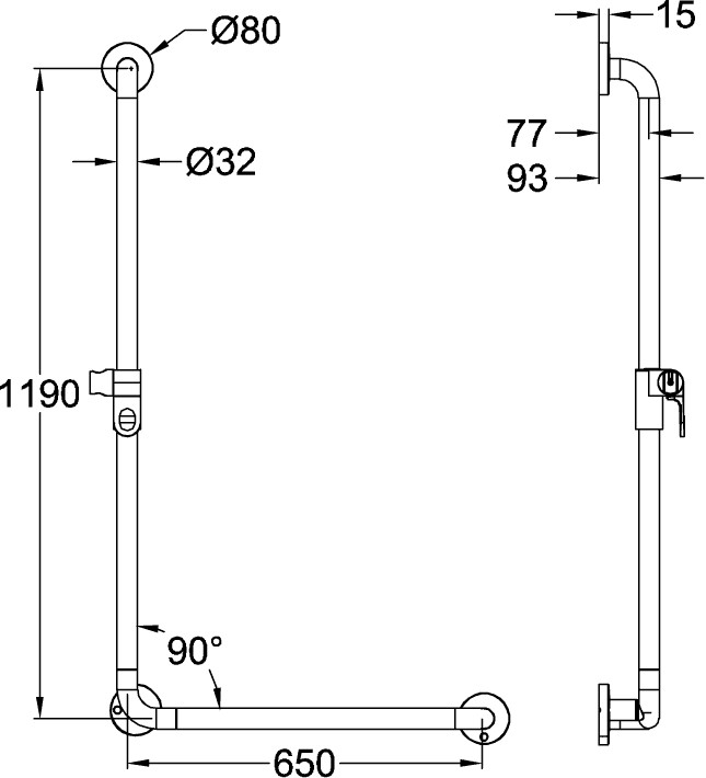 V&B Wandhaltegriff Vicare Funktion 119 x 65 cm, mit Brausehalter, 90°, reversibel, weiß