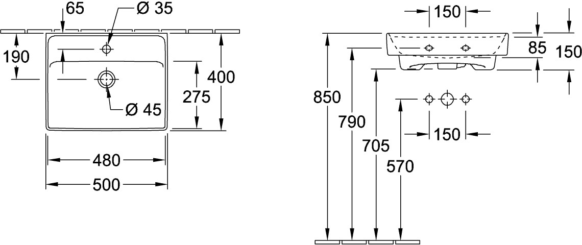 V&B Waschtisch Collaro 50 x 40 cm, mit Überlauf, weiß