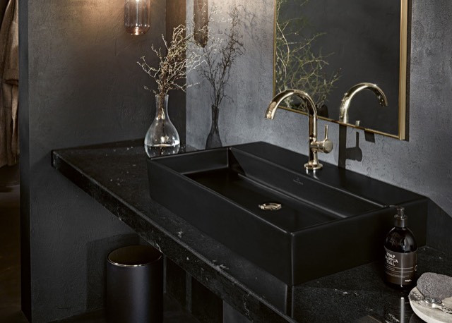 V&B Waschtisch Memento 2.0 80x47cm, geschliffen, Hahnloch, mit Überlauf, pure black C-plus K23249382