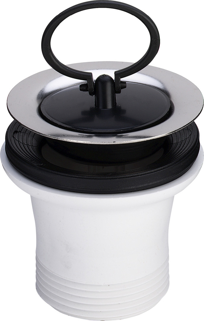 mit Stopfen/Schlüsselring, für Spülen, mit Ventiloberteil aus Edelstahl, Ventilunterteil Kunststoff