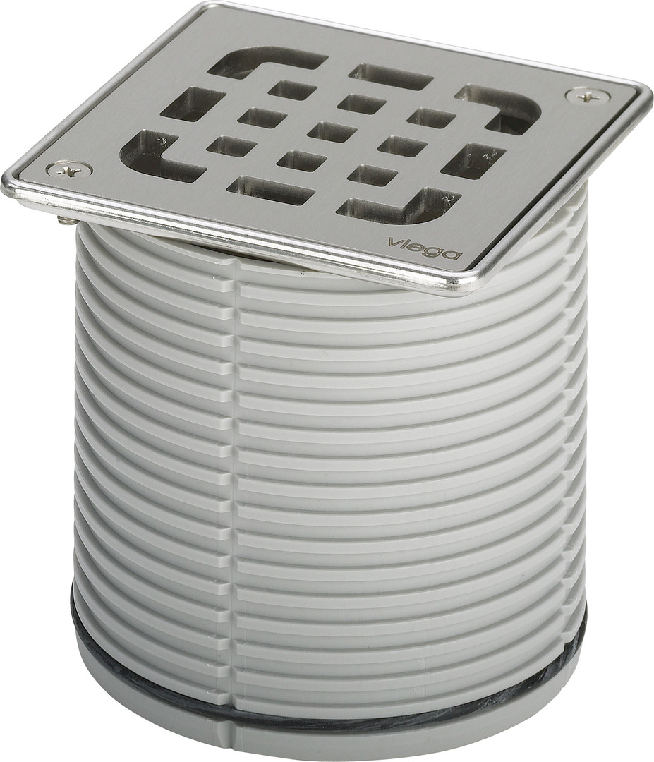 Viega Aufsatz Advantix 4934.3 100 x 100 mm, Kunststoff grau, verschraubt, mit Edelstahlrahmen 1.4404