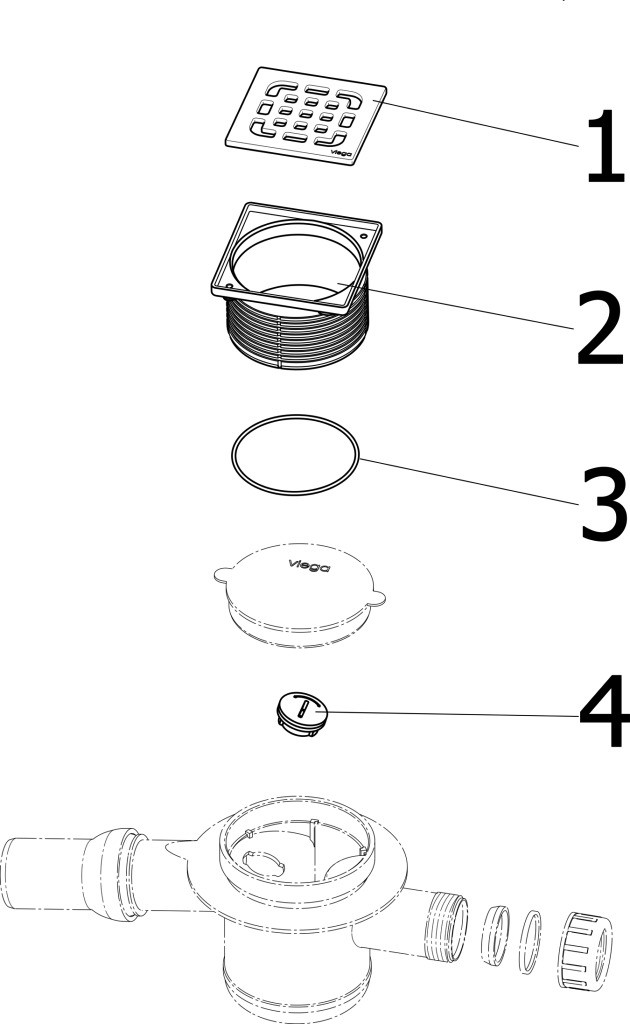 Viega Badablauf Advantix 4921.4 DN 50, Kunststoff grau, Ablauf waagerecht, ohne Abdichtungsflansch