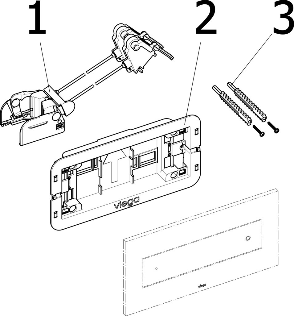 für UP-Spülkasten 2H, UP-Spülkasten 2L, UP-Spülkasten 2C, Kunststoff, Metall, Glas, Auslösung von vorn oder oben, 2-Mengen-Spültechnik, Bowdenzugeinheit, Befestigungsrahmen, Befestigungsmaterial