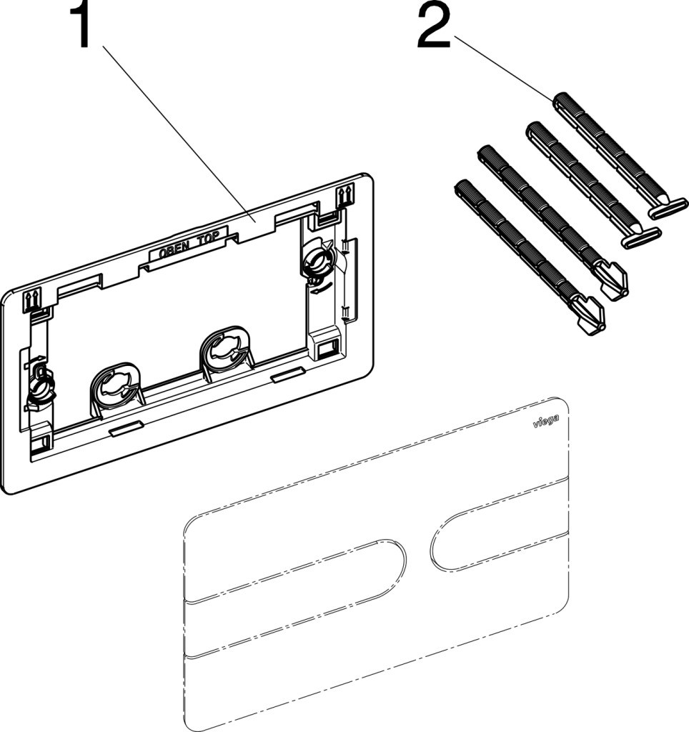 für Prevista, manuelle Spüllauslösung von vorn oder oben, 2-Mengen-Spültechnik, mit Befestigungsrahmen, Betätigungsstifteset und Befestigungsbolzen