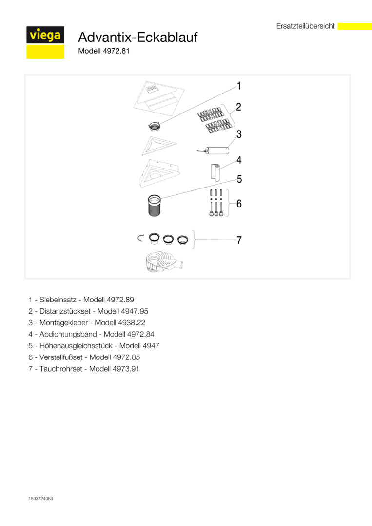 Viega Eckablauf Grundkörper Advantix 4972.81 DN 40/50, BH 110-200 mm, gerade, Edelstahl glänzend