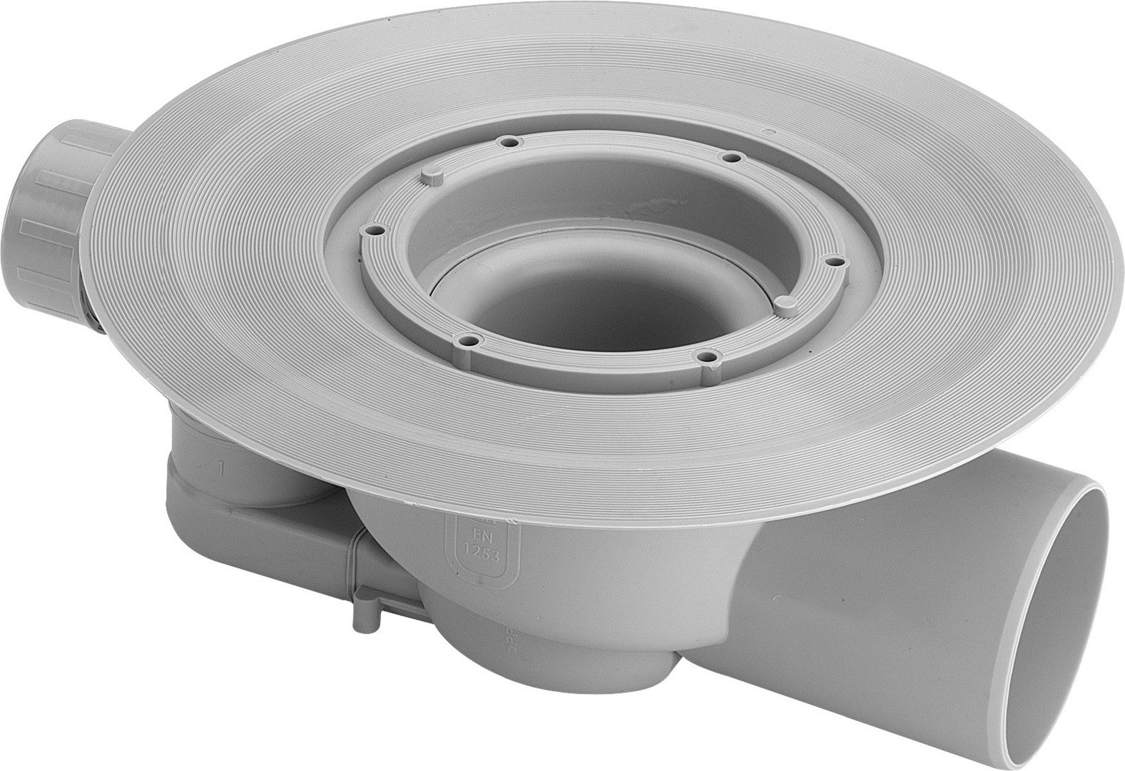 Systemmaß 100, ohne Aufsatz, bestehend aus Stopfen, Abdichtungsflansch, Geruchverschluss herausnehmbar, Zulauf DN 40 drehbar, Ablaufleistung Anstauhöhe 10 mm 0,75 l/s, Ablaufleistung Anstauhöhe 20 mm 1 l/s, Ablaufleistung Zulauf 1,6 l/s, güteüberwacht nach DIN EN 1253