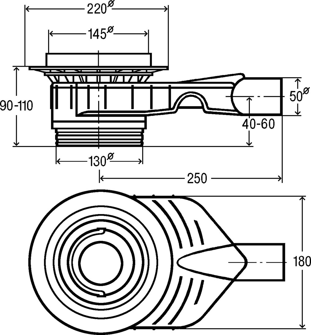 Systemmaß 100, Systemmaß 145, ohne Aufsatz, Ablauf waagerecht, Einlegeadapter für Verwendung von Aufsatz 100 oder 145 mm, Abdichtungsflansch, Stopfen, Sperrwasser rücksaugsicher und verstellbar von 35-50 mm, Reinigungsmöglichkeit der Anschlussleitung, Geruchverschluss herausnehmbar, Ablaufleistung Anstauhöhe 10 mm 0,75-1,2 l/s, Ablaufleistung Anstauhöhe 20 mm 0,8-1,2 l/s, güteüberwacht nach DIN EN 1253