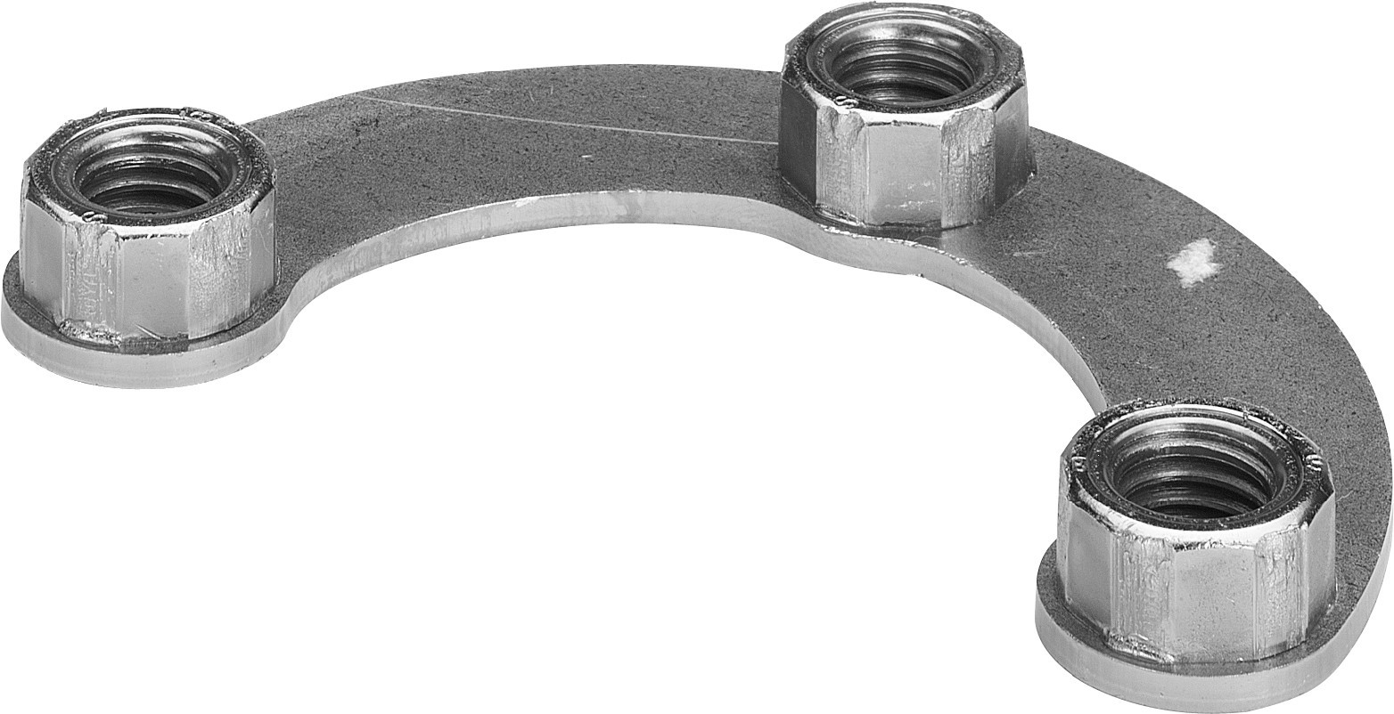 zur Sicherung von Flanschverbindungen in Verbindung mit Sicherheitsschrauben, 4-Loch-Flansch mit jeweils 3 angeschweißten Muttern, mit DVGW-G-Prüfzeichen