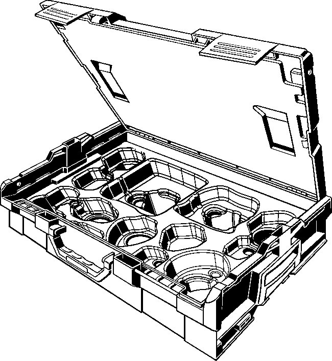 ausgestattet mit Systemkoffer Modell 2202, Koffereinsatz Pressringe Modell 2202.4, Deckeleinlage Modell 2202.90, Platzhalter für Gelenkzugbacken P1 und Z1 sowie für bis zu 12 verschiedene Pressringe d 12-35 bzw. D 3/8-3/4