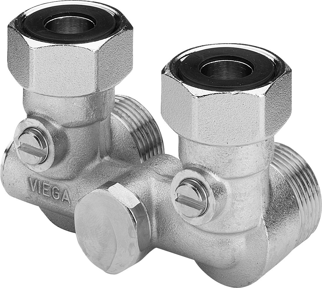 Viega Ventilheizkörperanschlussstück 1097.0 G 3/4 x 50 mm, Messing matt vernickelt, winklig, absperrbar