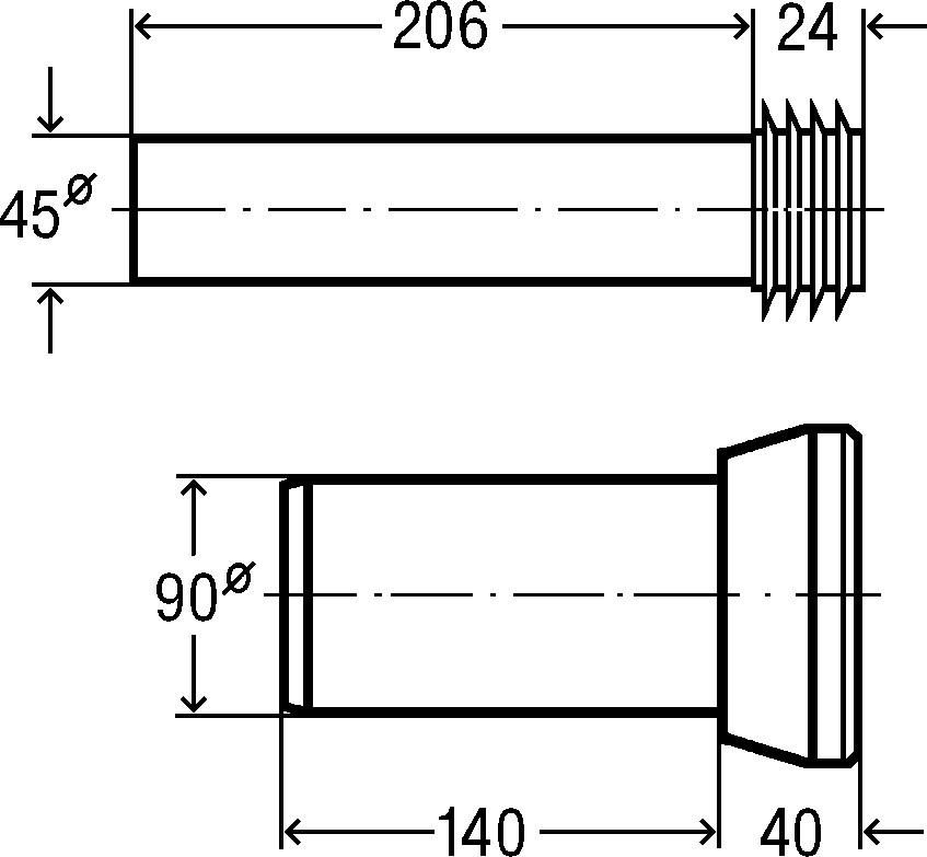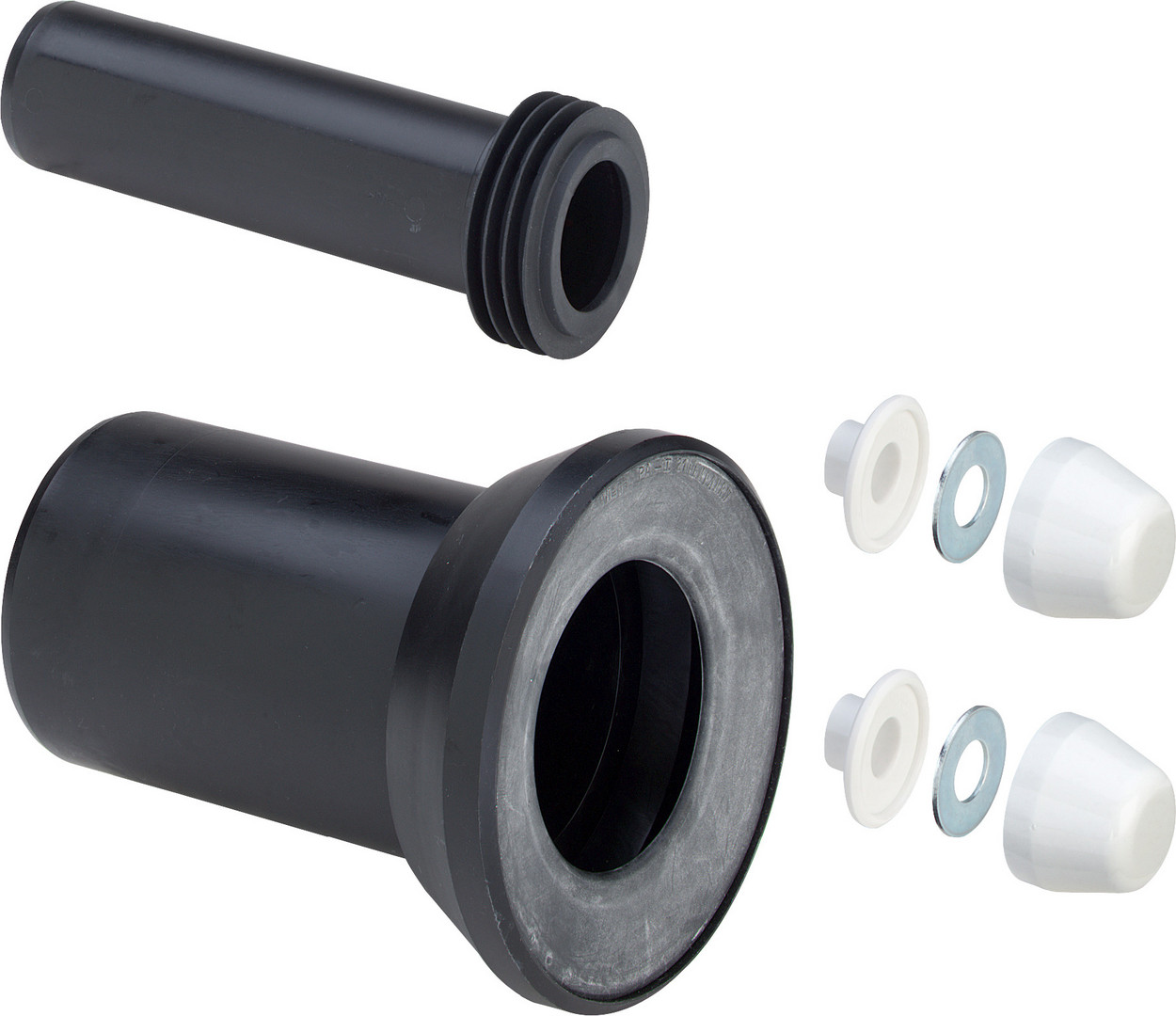 Spülrohr mit Spülrohrverbinder 45 x 230 mm, WC-Anschlussrohr mit Lippendichtung, Montageset (Abdeckzubehör weiß)