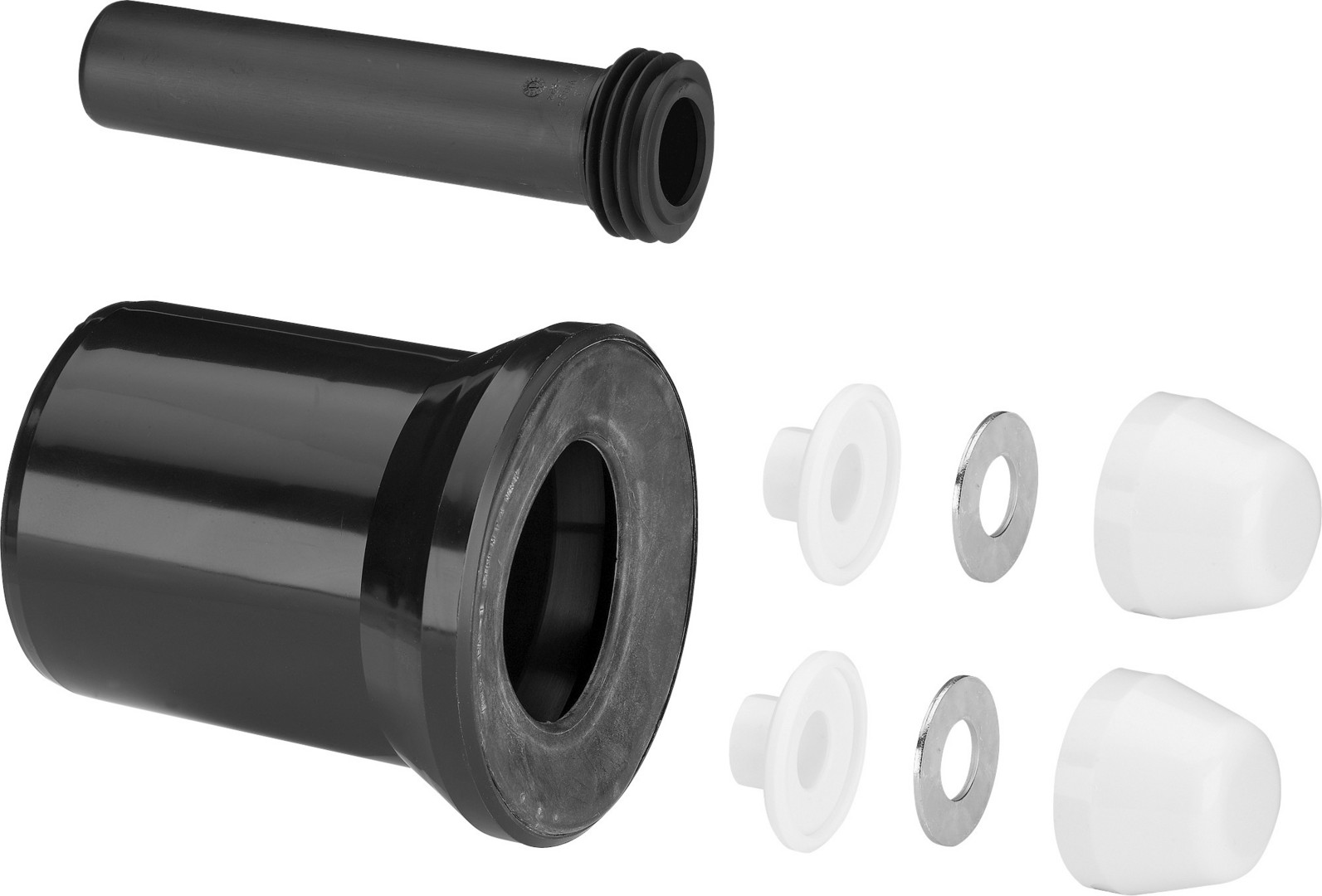 Spülrohr mit Spülrohrverbinder 45 x 230 mm, WC-Anschlussrohr mit Lippendichtung, Montageset (Abdeckzubehör weiß)