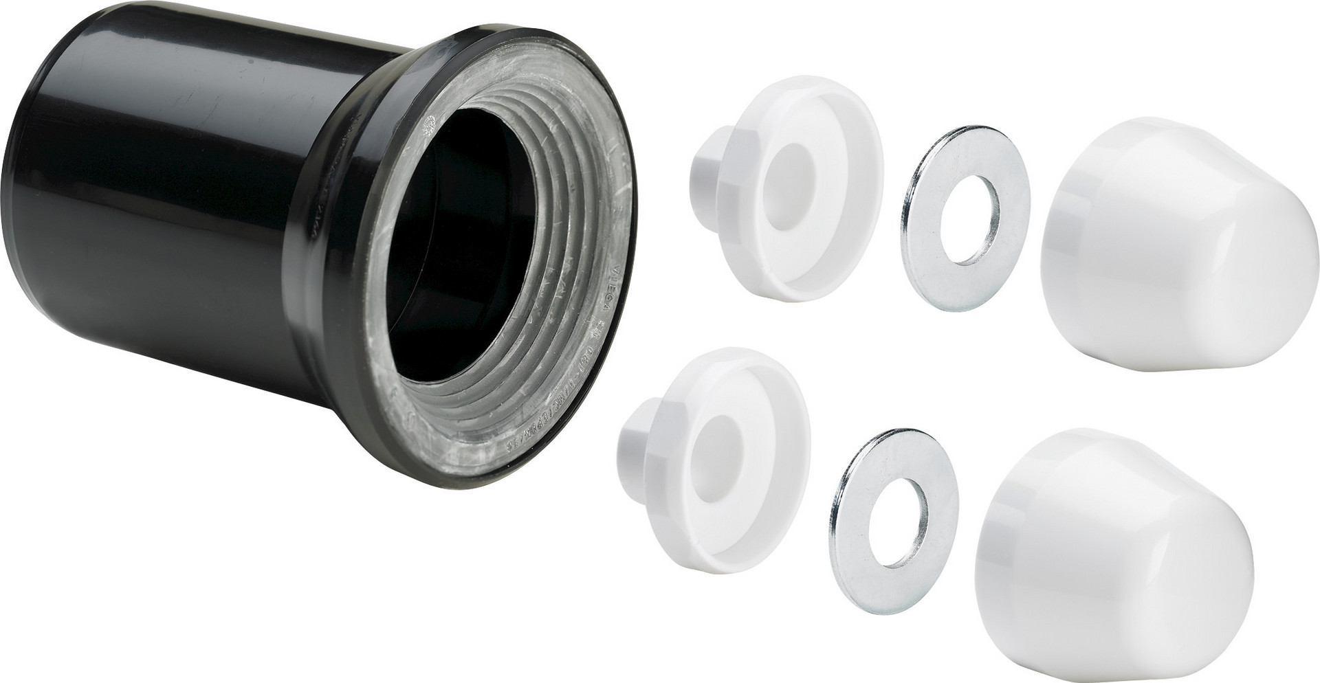 für WC mit aufgesetztem Spülkasten oder mit Druckspülerzulauf von oben, bestehend aus WC-Anschlussstutzen mit Lippendichtung und Montageset (Abdeckzubehör weiß)