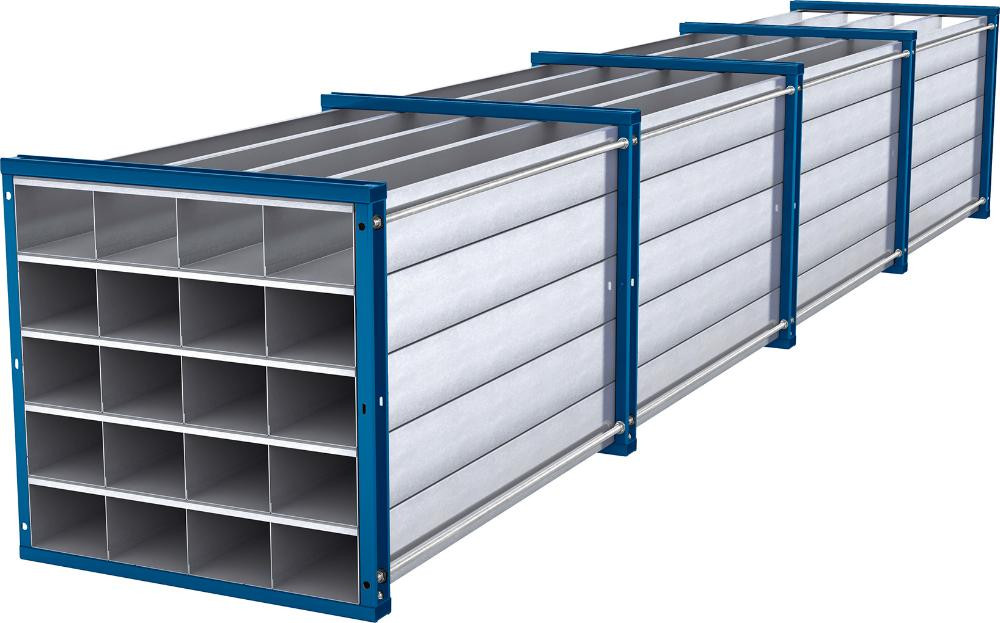 • Leicht erweiterbares System mit Blechwannen aus verzinktem Stahlblech