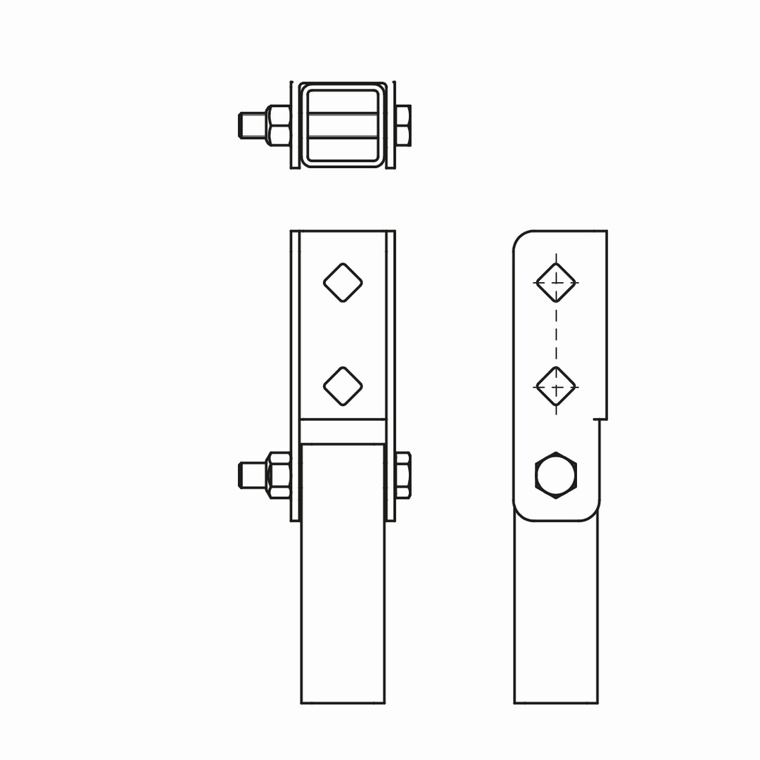 verstellbar, zur Schienenanbindung, zum Ausgleich von Dachneigungen, zusätzlich drehbar durch Schienenadapter, Stahl 1.0332, Oberflächenbeschichtung BIS Ultra Protect 1000 Systemtechnologie, ein System für Installationen im Innen- und Außenbereich, besteht min. 1000 Std. Salzsprühtest nach DIN ISO 9227