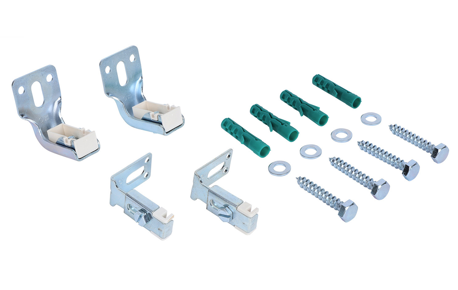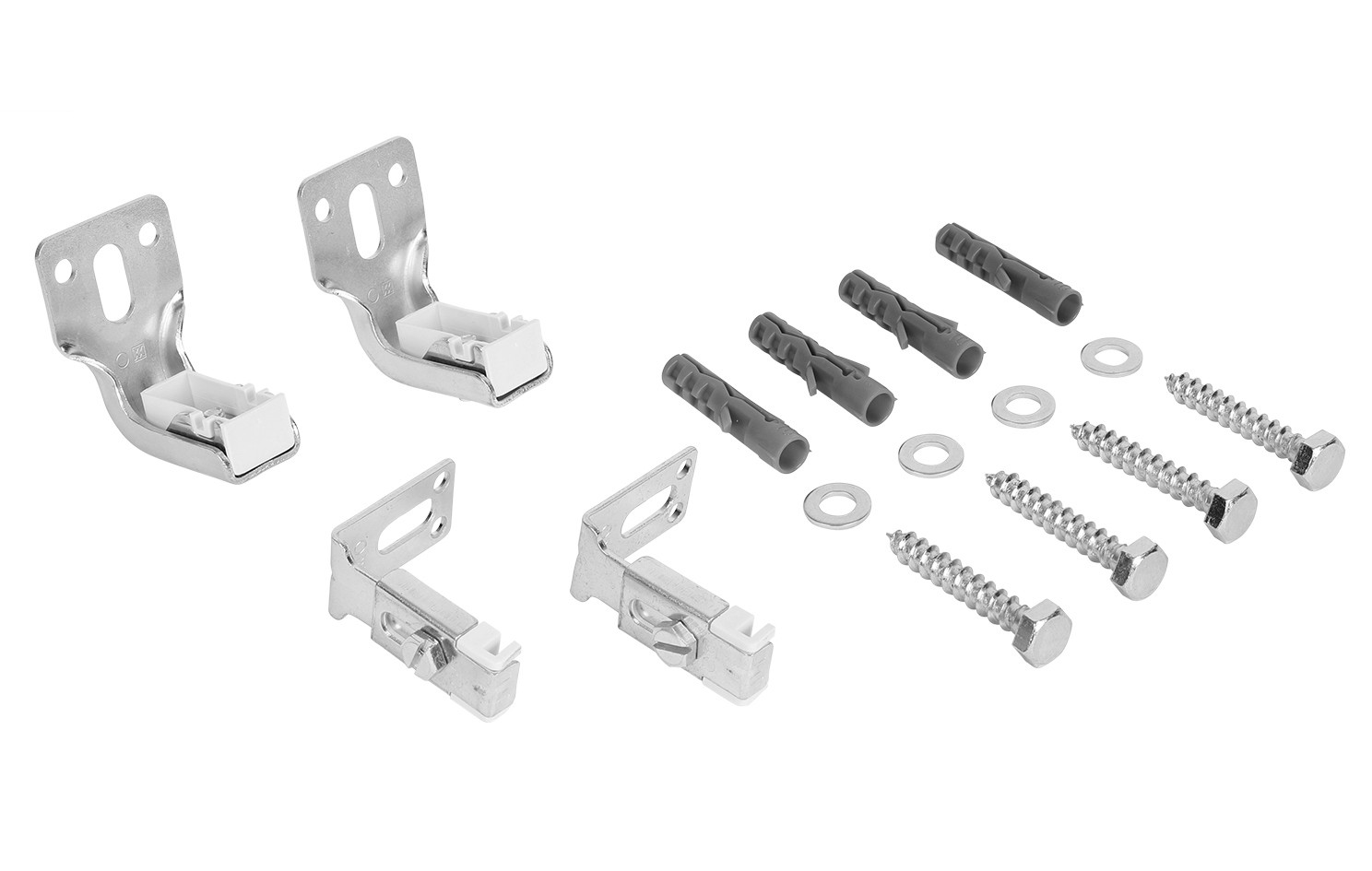 für Radiatoren mit scharfen Schweißnähten an Oberseite und Randseite, mit Kunststoffeinlage welche störende Schallübertragung durch Fließgeräusche verhindert, Stütze und Schieber mit Vertiefungsrille, Metallteile aus Stahl, Kunststoffteile aus POM, cremefarben, Dübel aus PA, elektrolystisch verzinkt, Temperaturbeständigkeit -25 bis +120 °C, bestehend aus 2x Wandkonsolen, 2x Wandhalter, 1x Befestigungssatz