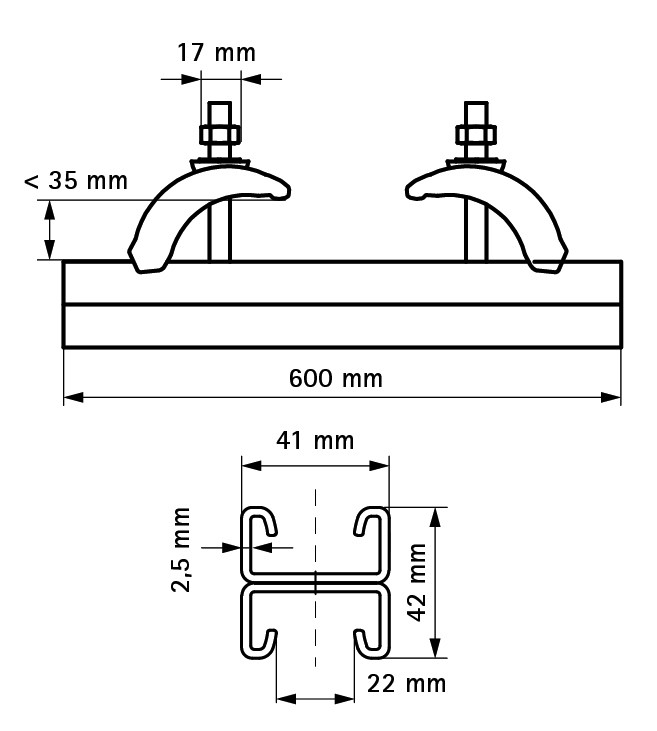 Walraven Trägerklemmset Strut 41x21D 600 mm, Stahl, feuerverzinkt K19745601