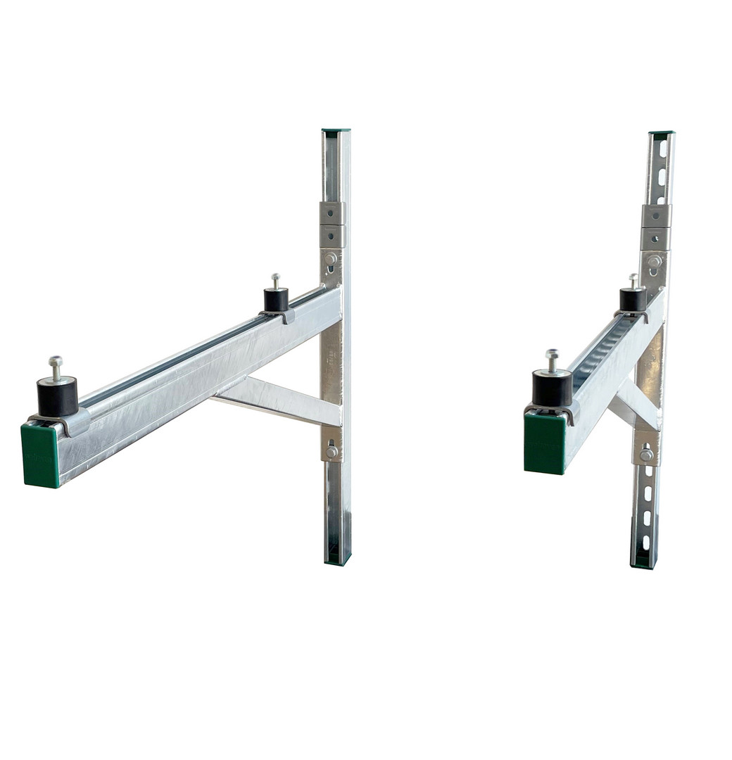 Profil 62|H + Support, anwendbar für Installationen im Innen- und Außenbereich, stufenlos verstellbar in Höhe und Wandabstand, mit Schwingungsdämpfer Typ Walraven VibraTek SB-MM, Material Schwingungsdämpfer, Gummi SBR + NR 55°+-5 Shore A Stahlgüte 4,8, Material Stahl, Oberflächenbeschichtung feuerverzinkt (EN-ISO 1461), universeller Montagesatz zur Befestigung von Geräten an Wänden