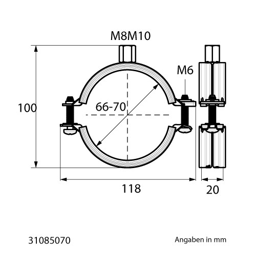 Walraven Zweischraubenschelle BIFIX G2 BUP1000 66-70 mm, M 8/10, EPDM, mit Einlage