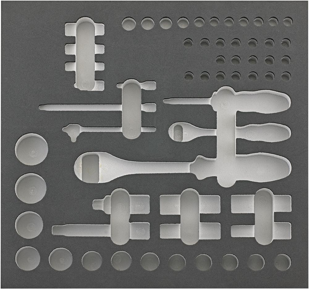 • 2-farbige Schaumstoffeinlage, fehlende Werkzeuge auf einen Blick erkennen