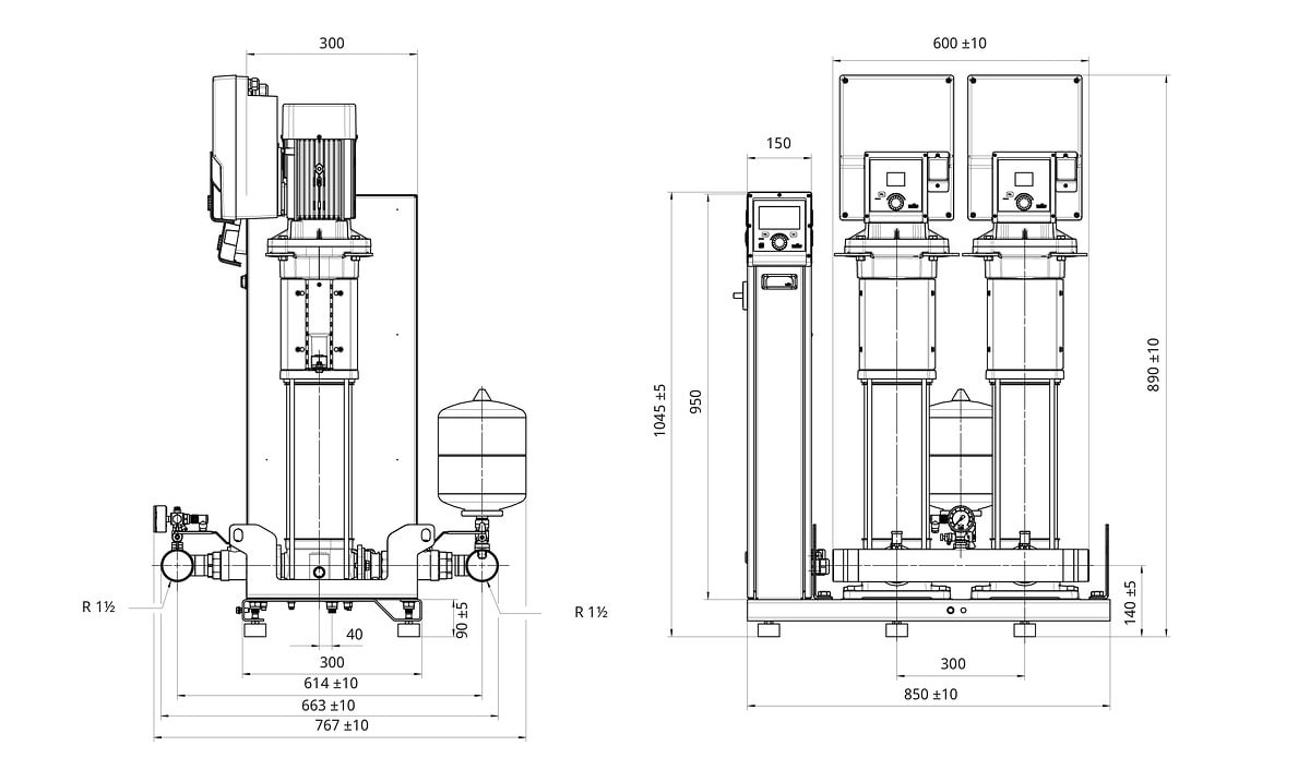 Wilo Mehrpumpenanlage SiBoost2.0 Smart 2HELIX VE407, R1½ (PN 10), R1½ (PN 16), 1.5kW, 1.69kW