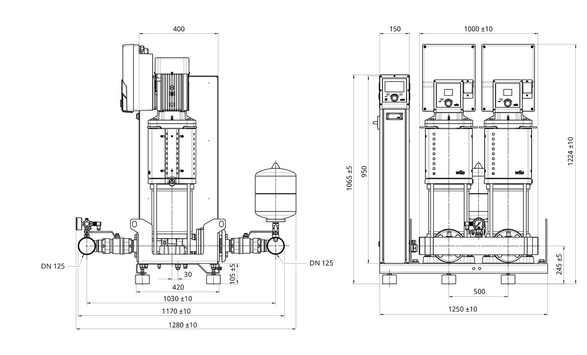 Wilo Mehrpumpenanlage SiBoost2.0 Smart 2HELIX VE5202, DN125 (PN 10), DN125 (PN 16), 7.5kW, 8.33kW