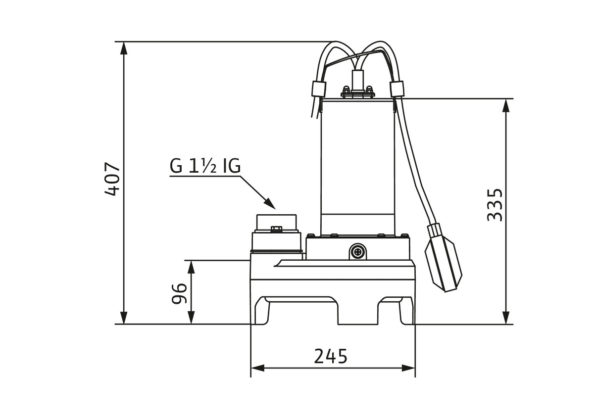 G 1 1/2, 230 V, für die stationäre und transportable Nassaufstellung im intermittierenden Betrieb, zur Förderung in häuslichen Bereichen von Abwasser ohne Fäkalien und Schmutzwasser (mit geringen Mengen Sand und Kies), bestehend aus Pumpe, Rückschlagklappe, vormontiert, Schlauchanschluss, beigelegt, Einbau- und Betriebsanleitung