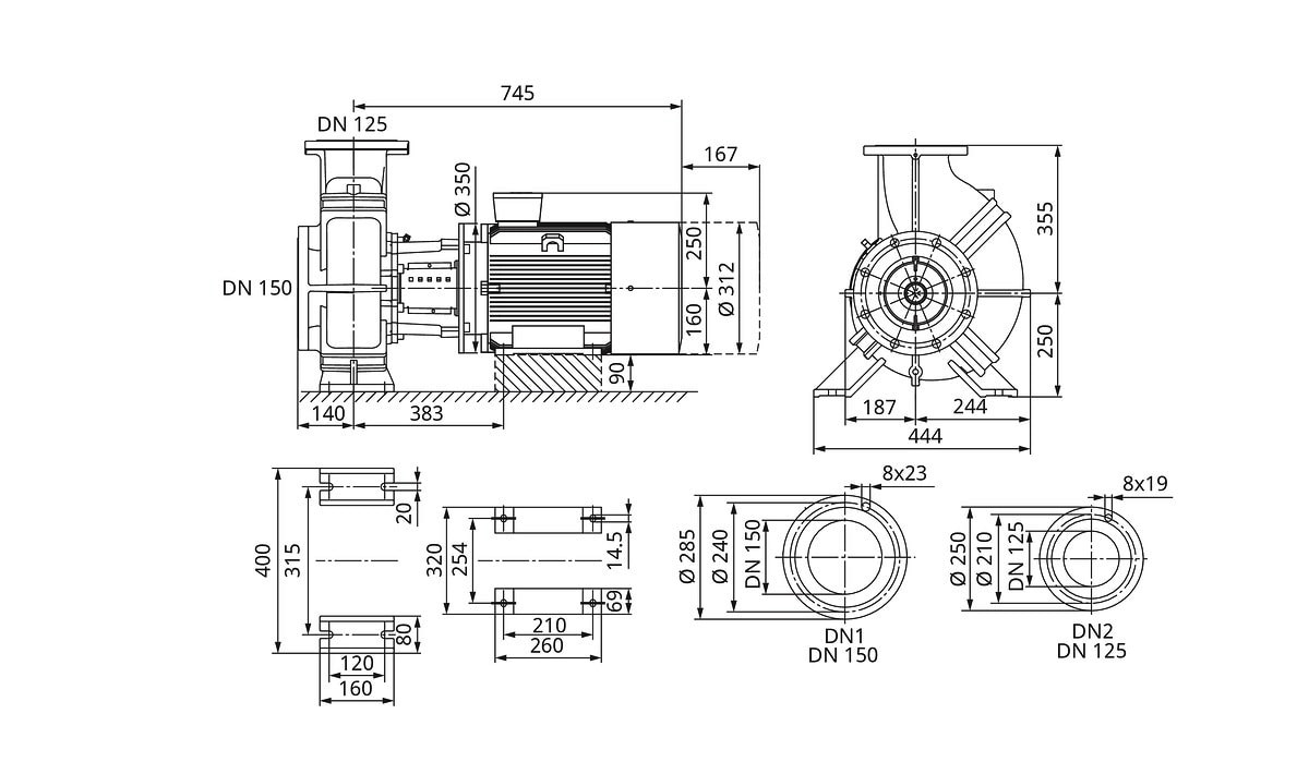 Wilo Trockenläufer-Blockpumpe Atmos GIGA-B 125/220-11/4-S1, DN150 (PN 16), DN125 (PN 16), 11.0kW