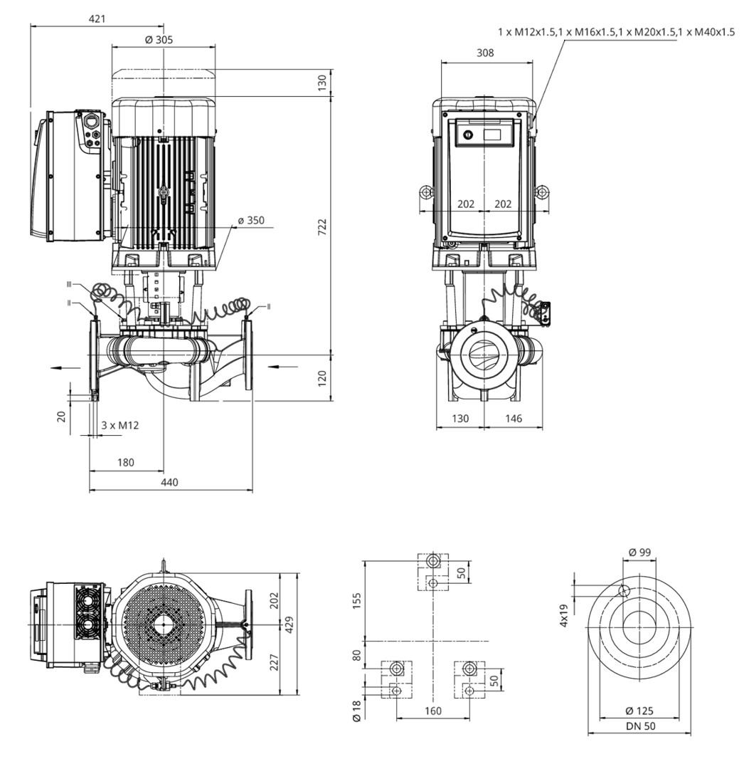 Wilo Trockenläufer-Energiespar-Einzelp. CronoLine IL-E 50/190-11/2, DN50 (PN 16), 11.0kW, 11.50kW