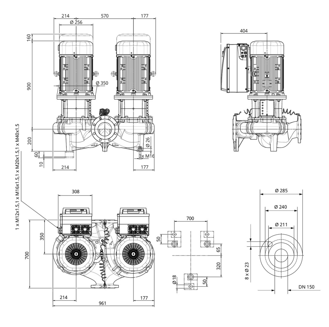 Wilo Trockenläufer-Hocheffizienz-Doppel Stratos GIGA-D 150/2-18/15, DN150 (PN 16), 15.0kW, 15.50kW