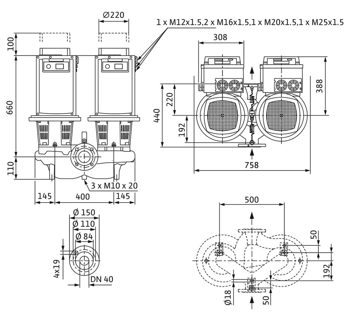 Wilo Trockenläufer-Hocheffizienz-Doppelpumpe Stratos GIGA-D 50/4-62/15-R1-S1, ohne Differenzdruckgeber K20717242