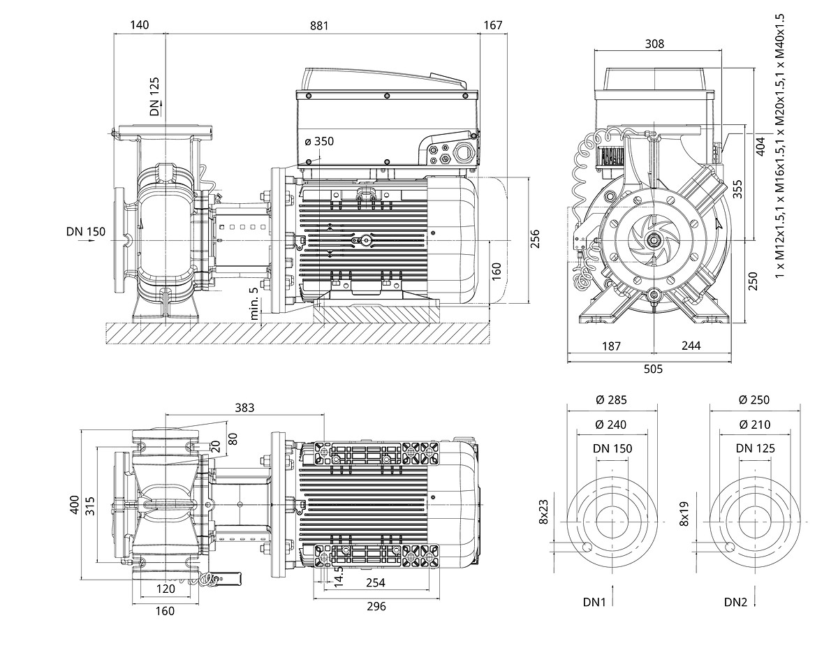 | Nenndurchmesser Anschluss Auslassseite | DN 125 |