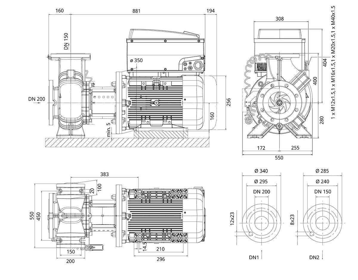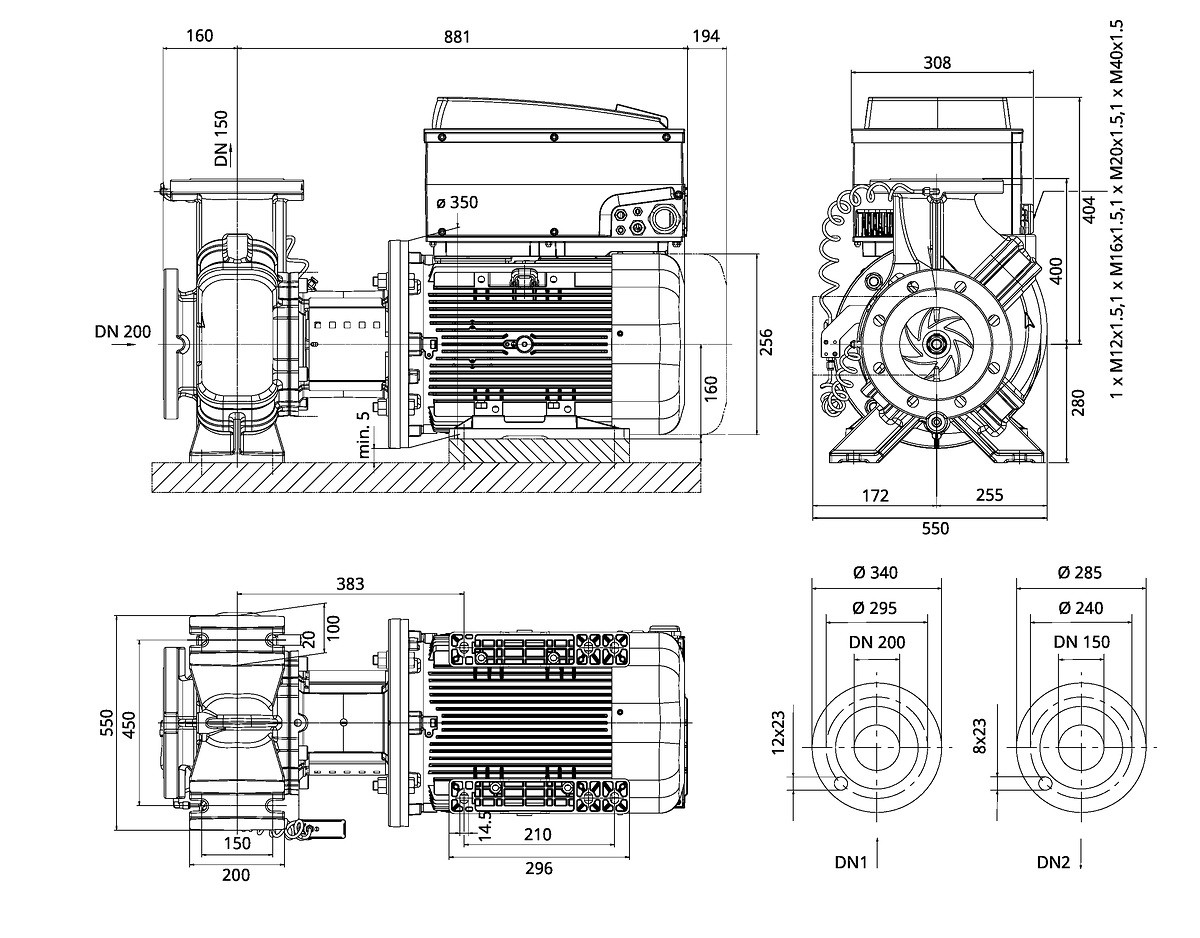 Wilo Trockenläufer-Hocheffizienz-Einzelp Stratos GIGA B 150/2-13/11-R1-S1, DN200 (PN 16), DN150 (PN 16), 11.0kW, 11.80kW