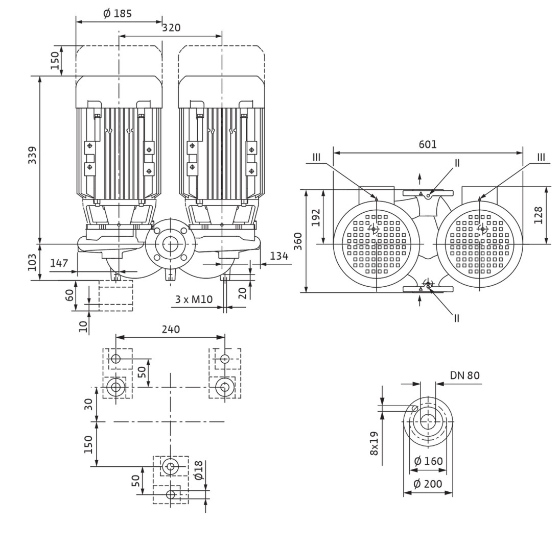 Wilo Trockenläufer-Standarddoppelpumpe VeroTwin DPL 80/120-0,55/4, 0,55 kW, 4-polig