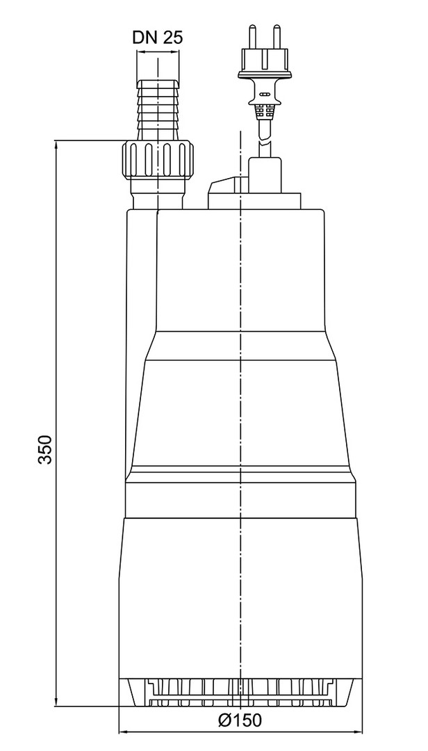 mehrstufige Tauchdruckpumpe mit großer Förderhöhe aus schlagfestem Kunststoff und Edelstahl, Motorwicklung mit thermischen Wicklungsschutz, Abdichtung durch Gleitring- und Wellendichtring, Mantelstromkühlung, vertikaler Druckabgang 1" AG mit Schlauchanschluss DN 25, Ausführung A mit angebautem Schwimmerschalter, mit Schlauchtülle G1 x 20 und G1 x 13, mit 10 m Anschlusskabel mit Schutzkontaktstecker, zur Förderung von leicht verunreinigtem Schmutzwasser, Bewässerung aus Regenfass oder Zisterne, 230 V, 50 Hz, Schutzart IP 68, Eintauchtiefe 5 m, Medientemperatur max. 40 °C, Einschaltwasserstand min. 300 mm, Ausschaltwasserstand min. 20 mm