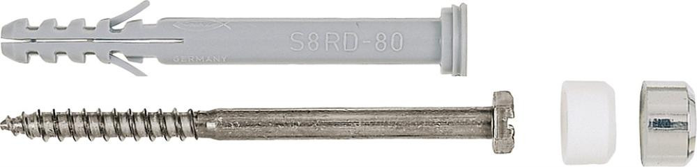 Komplett-Befestigungssatz S 8 RD 60 WCR inkl. Schrauben aus nicht rostendem Stahl, Einrasthülsen und weißen bzw. chromfarbenen Abdeckkappen für die einfache und schnelle Montage von Stand-WCs und Bidets. Zur Durchsteckmontage geeignet.