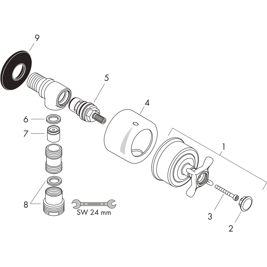 hansgrohe Absperrventil Axor Montreux Stop mit Rückflussverhinderer, Kreuzgriff, chrom