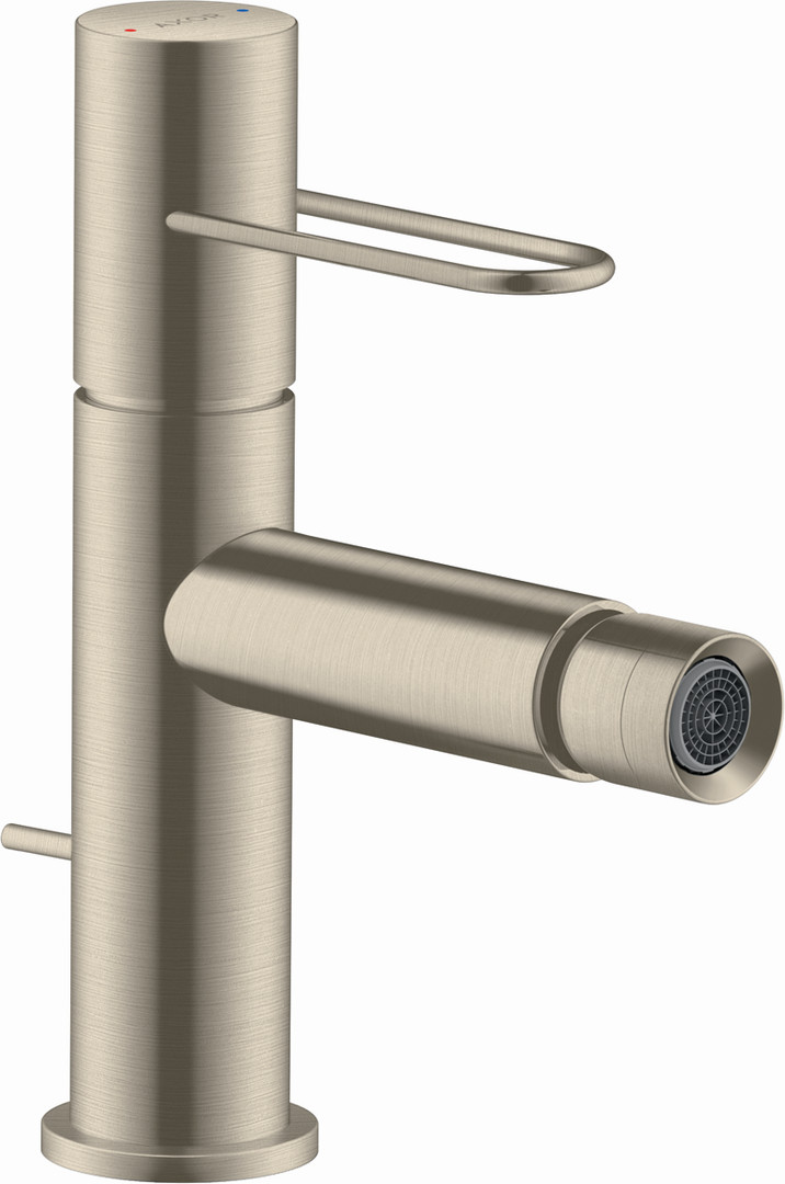 hansgrohe Bidet-Einhebelmischer Axor Uno Ausladung 124mm, mit Bügelgriff, Zugstangen-Ablaufgarnitur, brushed nickel