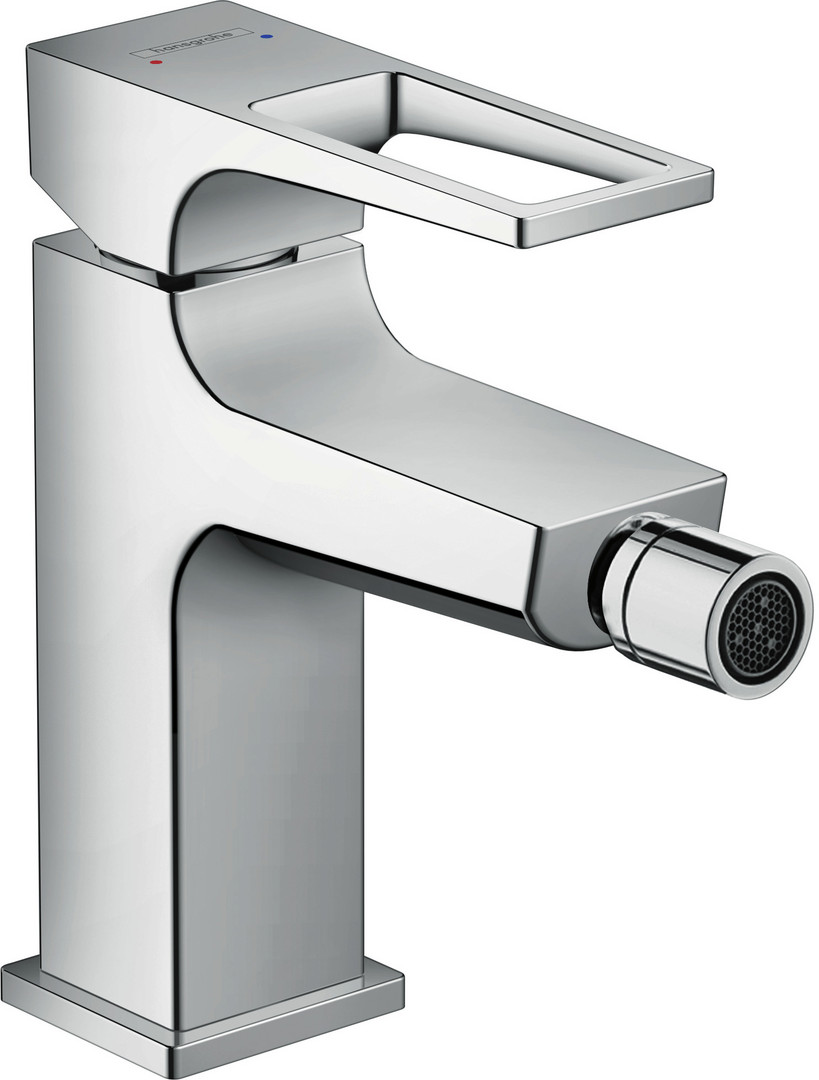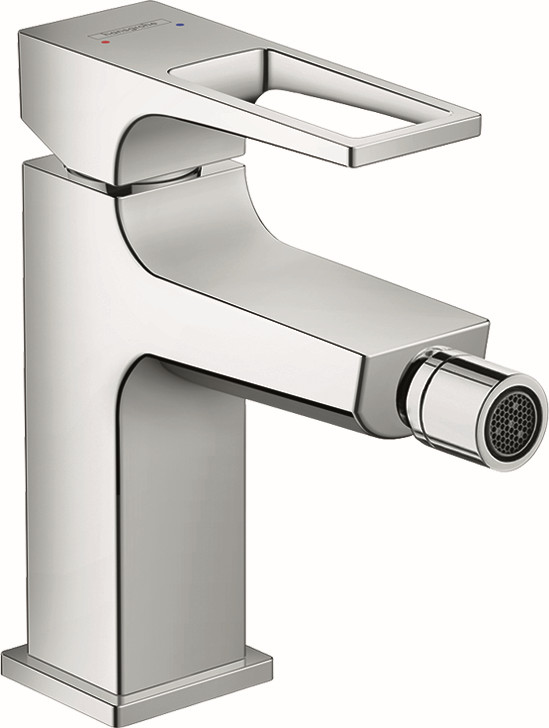 hansgrohe Bidet-Einhebelmischer Metropol mit Bügelgriff, Push-Open-Ablaufgarnitur, Ausladung 129mm, chrom