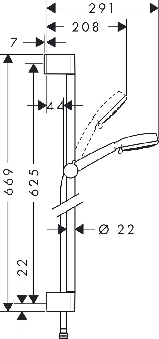 mit QuickClean-Antikalksystem, 3 Strahlarten Rain, Normalstrahl, Shampoostrahl, Massagestrahl, Strahlartenumstellung durch drehbare Strahlscheibe, Brausekopfgröße 100 mm, Handbrausehalterung Neigungswinkel um 45° verstellbar, max. Durchflussmenge bei 3 bar 9 l/min, Mindestfließdruck 1 bar, Profil Steigrohr rund, Wandstützen aus Kunststoff, Wandbefestigung Schraubbefestigung, bestehend aus Handbrause Crometta 100 Vario (# 26824400), Unica Brausestange Croma 65 cm mit Brauseschlauch (# 265030000)