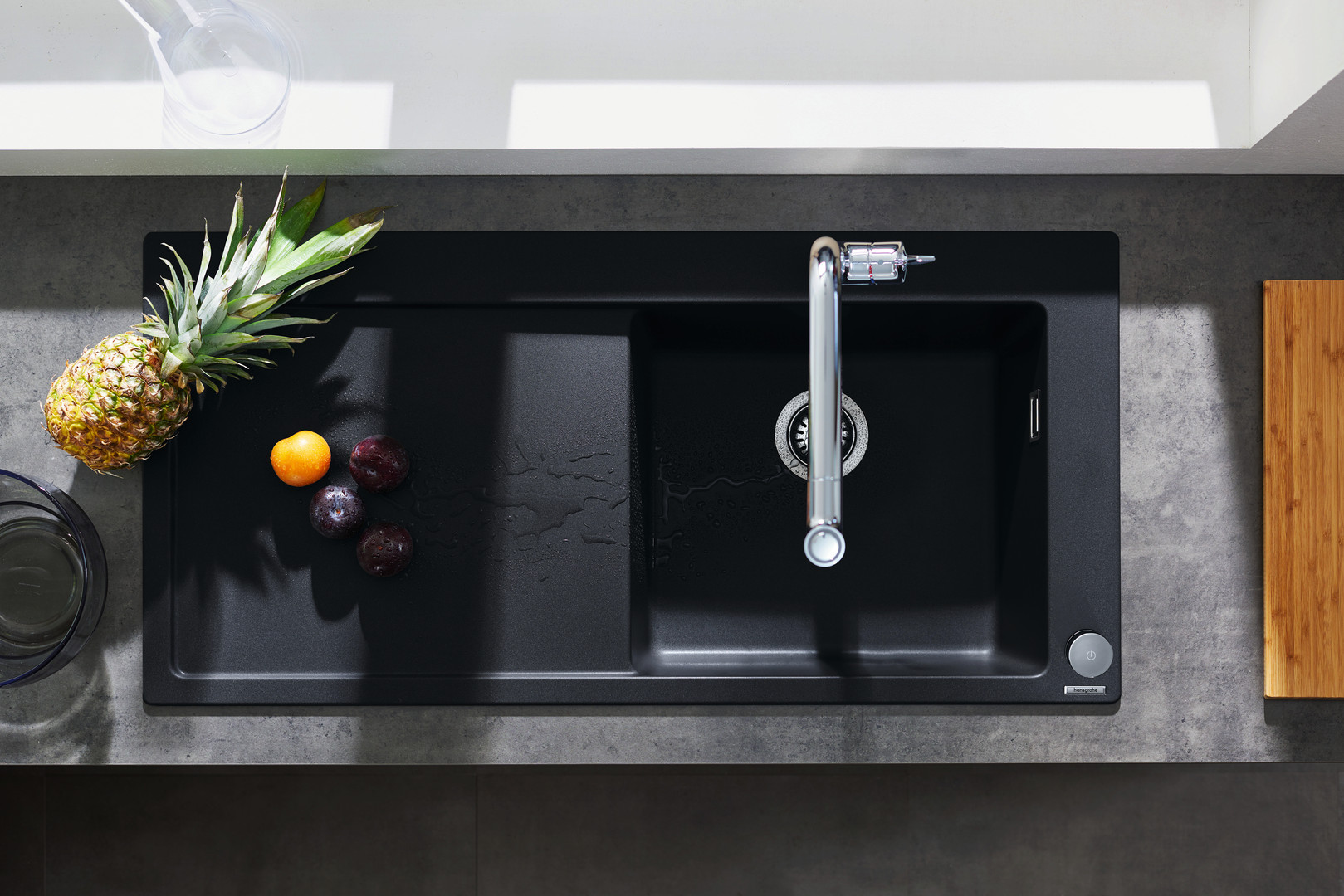 ohne Ablaufgarnitur, Material SilicaTec, Beckentiefe 190 mm, Unterschrank 900 mm, Einbauart Aufbau, Überlauf im Hauptbecken seitlich rechts