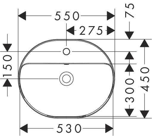 hansgrohe Einbauwaschtisch Xuniva U 550x450mm, mit Hahnloch, mit Überlauf, weiß