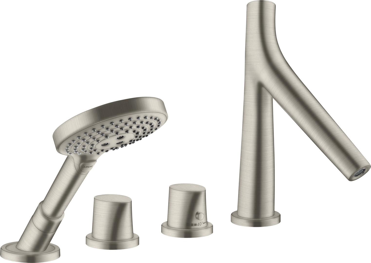 hansgrohe Fertigmontageset Axor Starck Organic 4-Loch-Wannenrandarmatur, mit Thermostat, Edelstahl-Optik K19782145