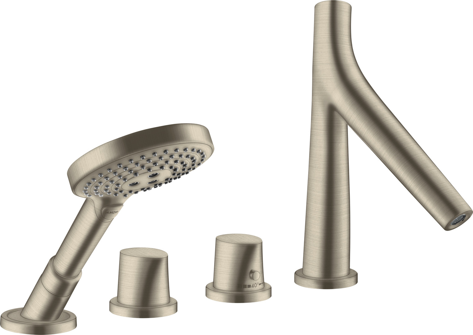 hansgrohe Fertigmontageset Axor Starck Organic 4-Loch-Wannenrandarmatur, mit Thermostat, brushed nickel