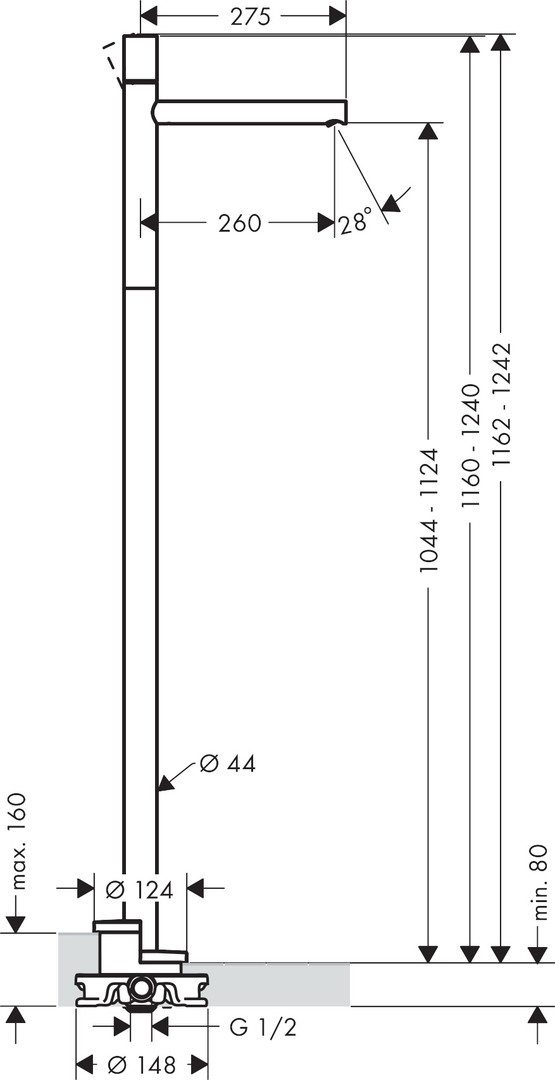 | Vorsprung Auslauf | 260 mm |