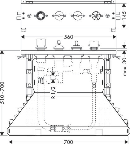 hansgrohe Grundkörper Axor DN 15, für 4-Loch Fliesenrandarmatur, mit Thermostat