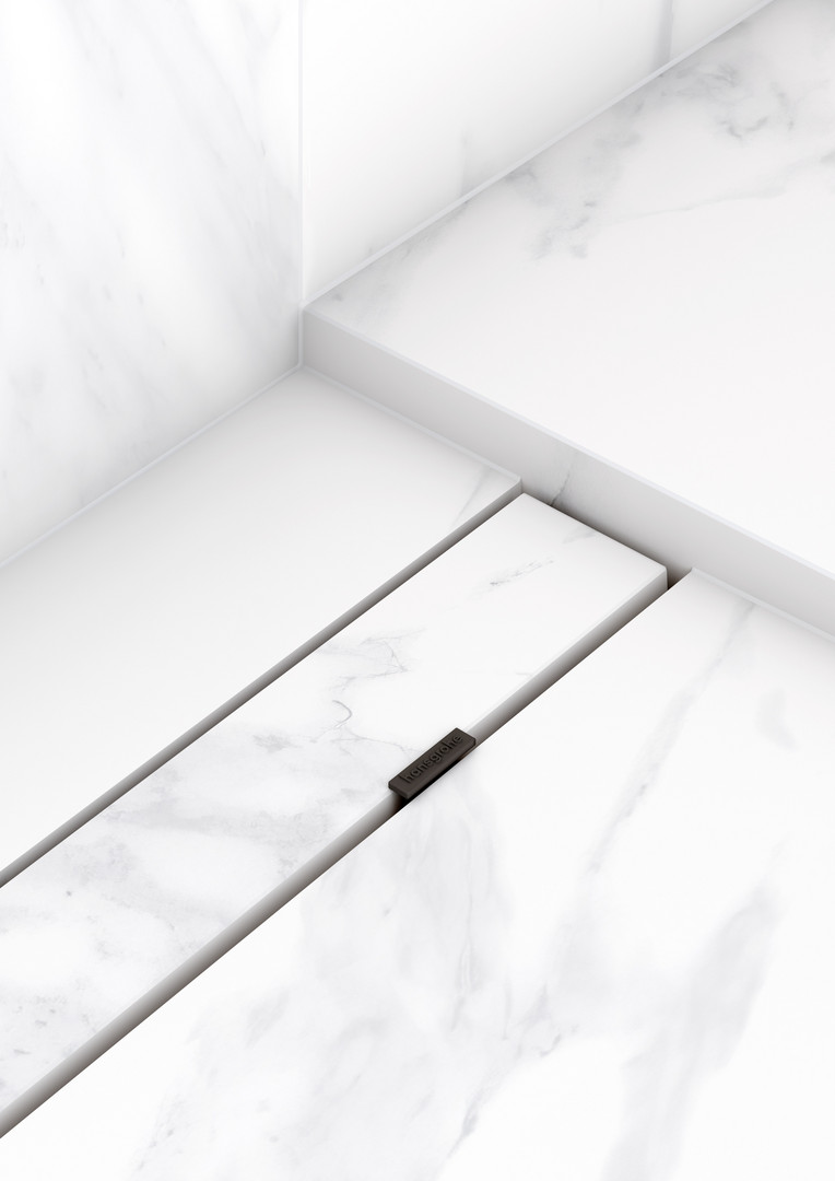 bestehend aus befliesbare Abdeckung, Abdeckungsheber, Dryphon, rahmenloses Design, vor Ort kürzbar, höhenverstellbare Abdeckung, Ablaufleistung bis zu 60 l/min, Anwendungsbereich Neubau, Sanierung, Fliesenstärke bis 40 mm, geeignet für jede Fliesenart, und Fliesenstärke, einfache Reinigung, Abdeckungsheber ermöglicht einfaches herausnehmen des Fertigsets, Art der Geruchsdichtung mechanisch, Dryphon ermöglicht wasserloses Siphonsystem, Montageart frei im Raum, zweiseitig, Überlänge von 50 mm auf beiden Seiten, Werkstoffgüte Abdeckung Edelstahl V2A (1.4301), geeignet für Primärentwässerung, Rostbreite 58 mm, Installation eingepasst in die Installation zwischen zwei Wänden